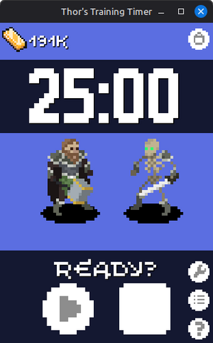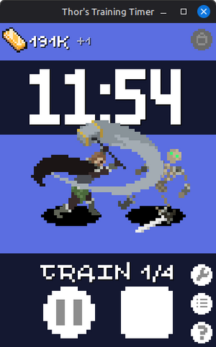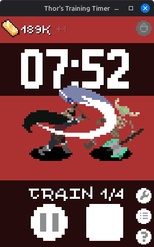 Thor's Training Timer is a Pomodoro Timer idle game/desktop timer toy set in the world of Loki's Revenge - before Ragnarok and the events of Loki's Revenge, Thor and the other gods spent time training for the fight.